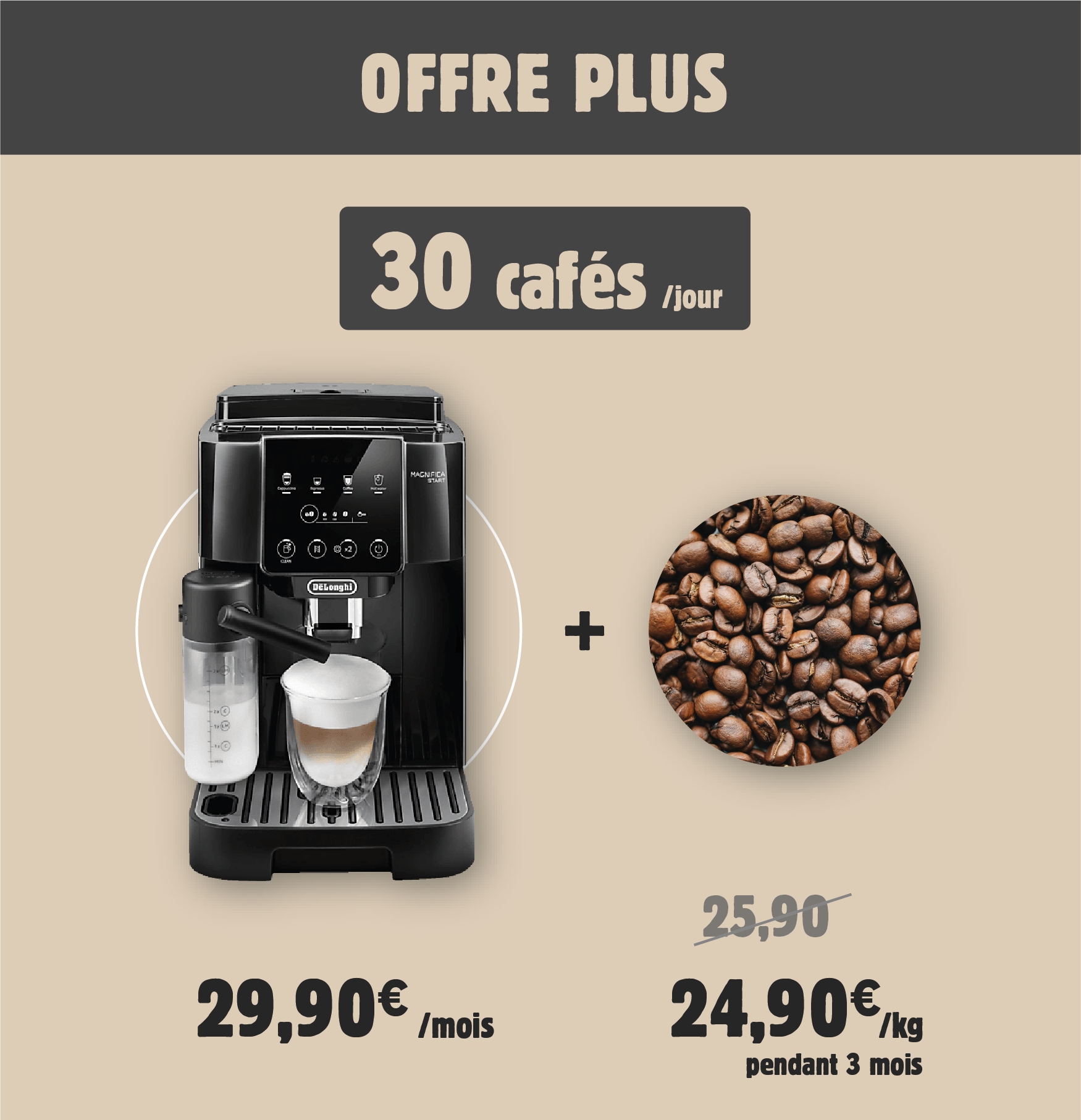 Une solution clé en main avec l'installation et le réglage d'une machine à café adaptée au volume de consommation et livraison régulière de café, ajustable selon vos besoins ainsi qu'un SAV en cas de problème technique.